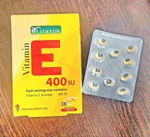 Vitamin E with a dose of 400 IU is produced and offered in soft gelatin capsules in blister packaging by Viralian Company. This product contains gelatin of bovine origin and includes animal-derived components.